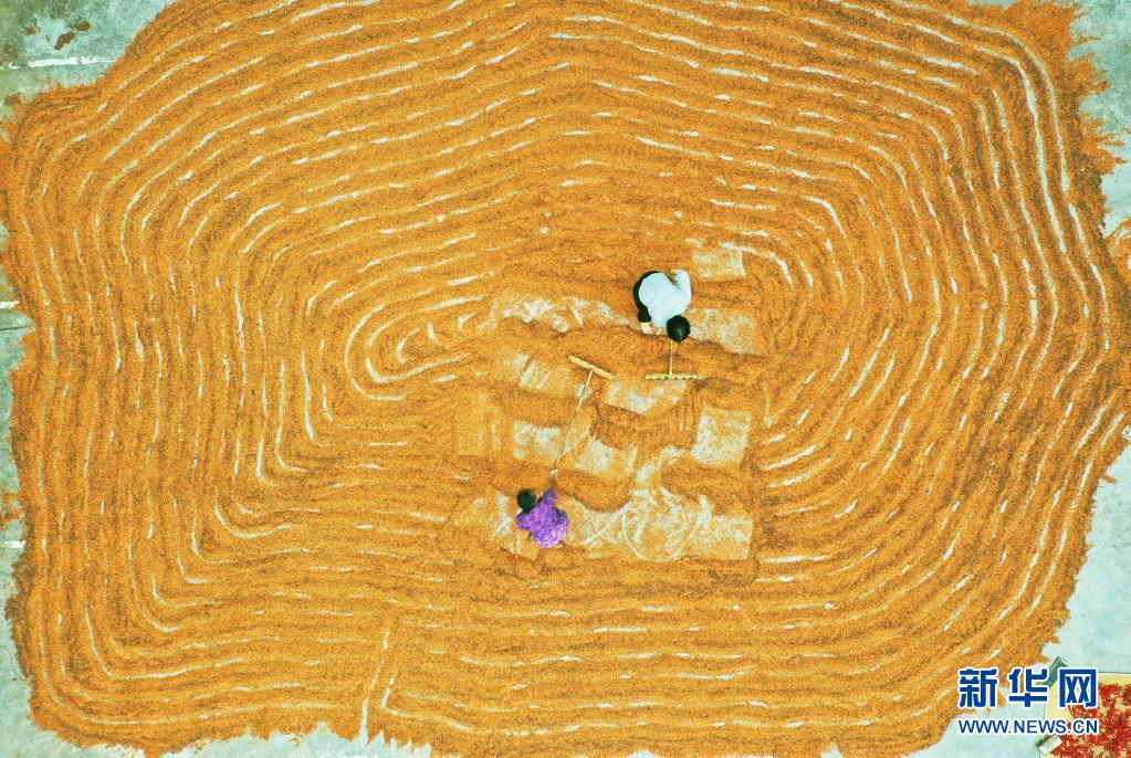 立秋過后,貴州省赤水市農民種植的水稻、高粱、玉米、辣椒等農作物迎來收獲季,當地村民搶抓晴好天氣將收獲的農作物鋪放在房前屋后的壩子中進行晾曬,構成一幅幅美麗的“曬秋圖”。