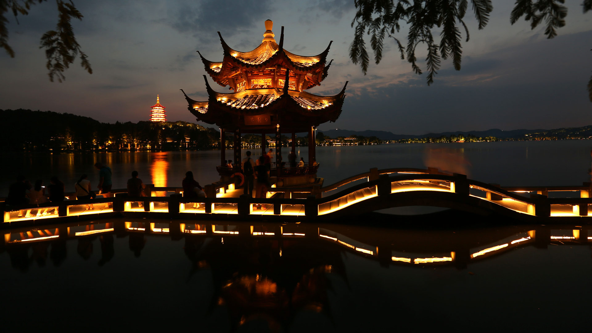 杭州西湖夜景(8月31日攝)。臨近G20杭州峰會,杭州夜色柔美,燈光璀璨。9月4日至5日,二十國集團(G20)領導人第十一次峰會將在浙江杭州舉行。 新華社記者殷剛攝