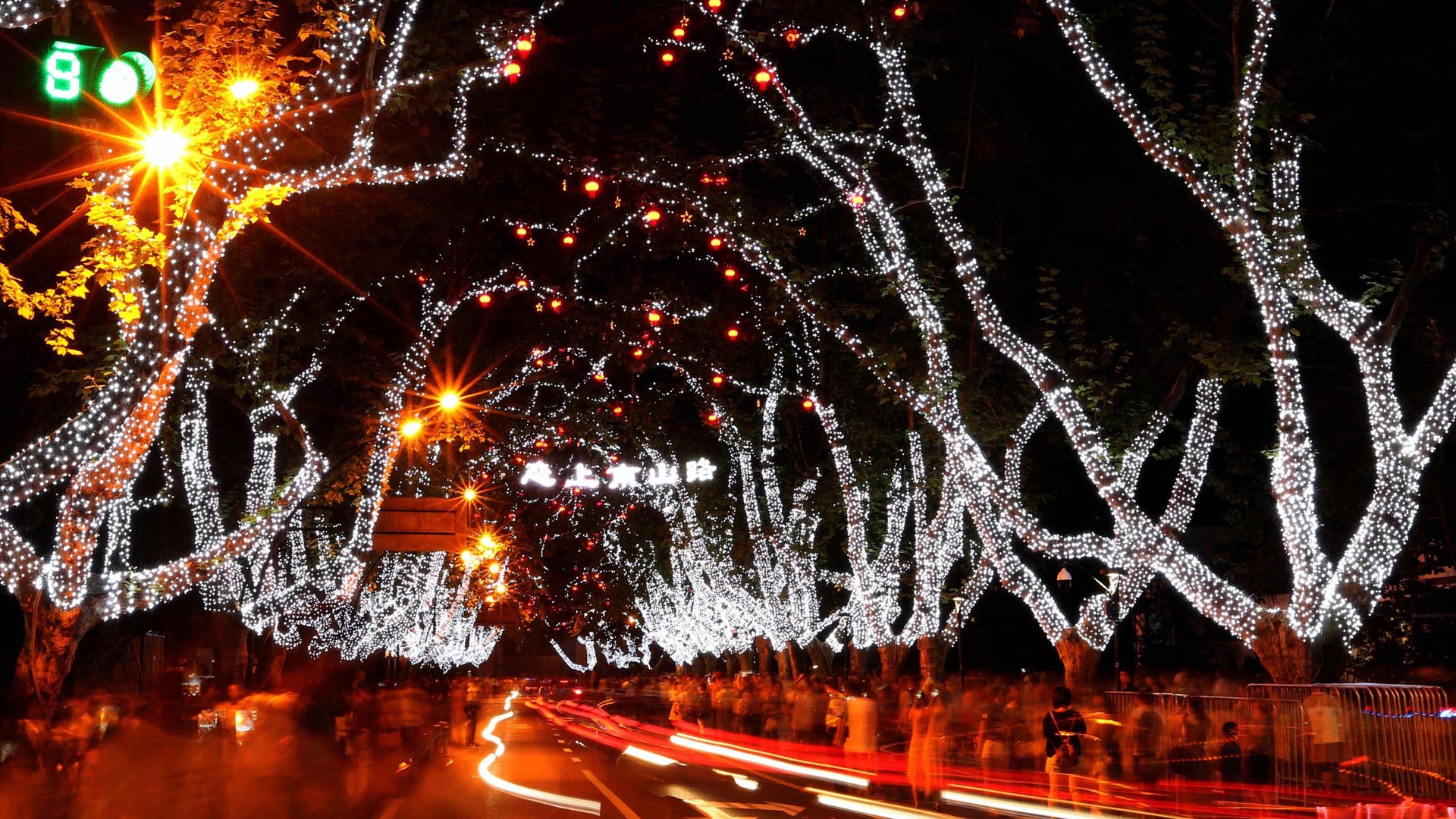 游客欣賞杭州南山路夜景(8月31日攝)。新華社記者殷剛攝