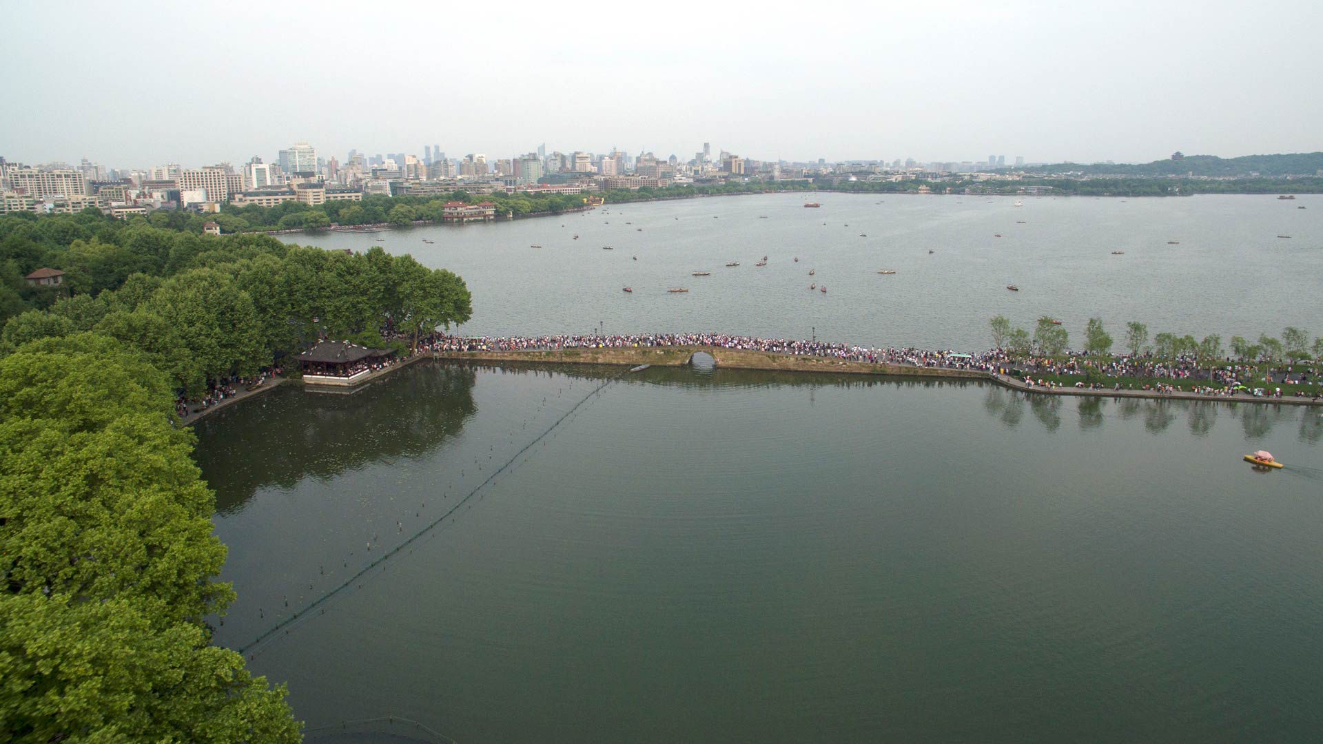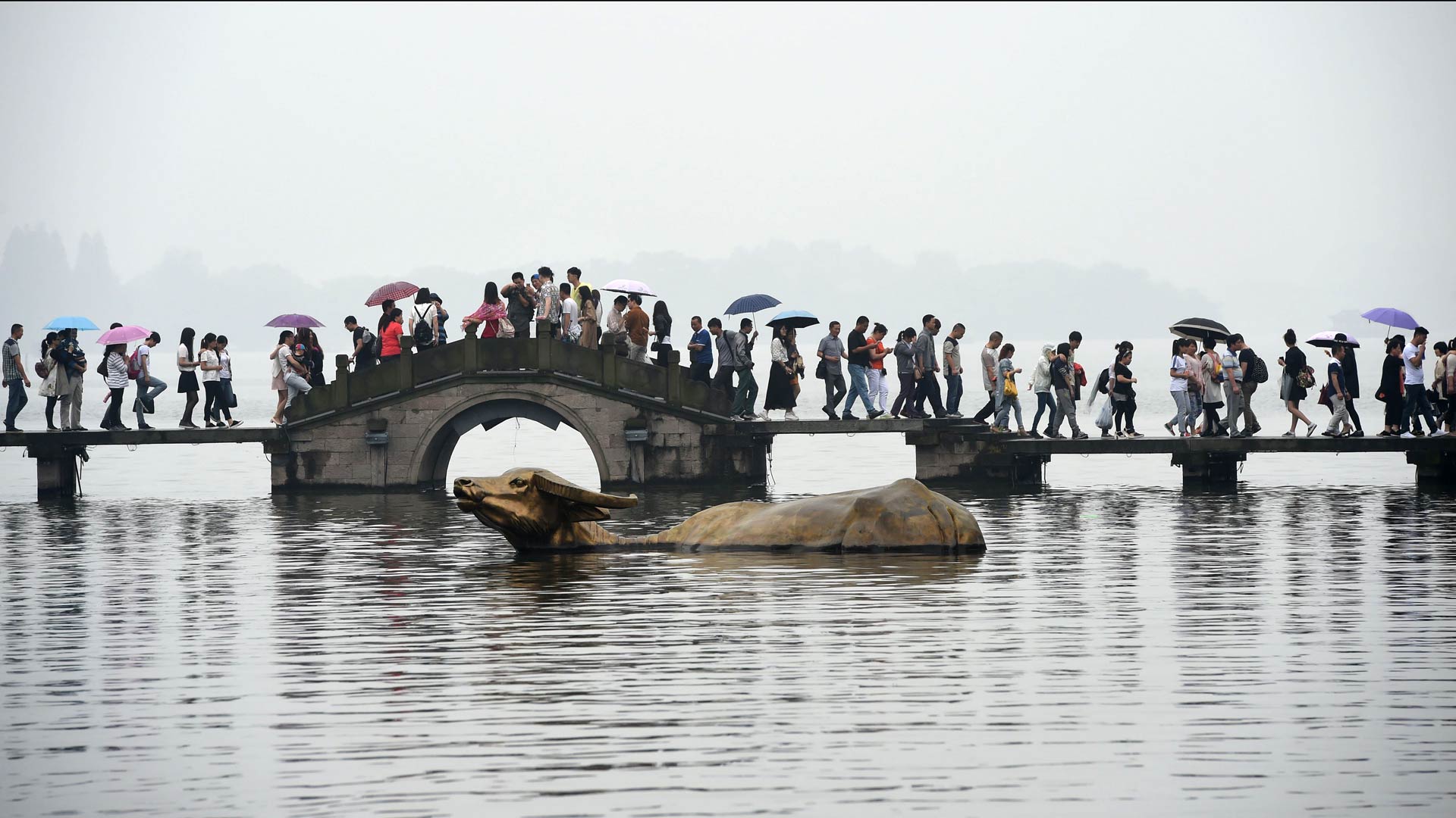 游客行走在杭州西湖涌金橋上(2015年5月2日攝)。新華社記者韓傳號攝