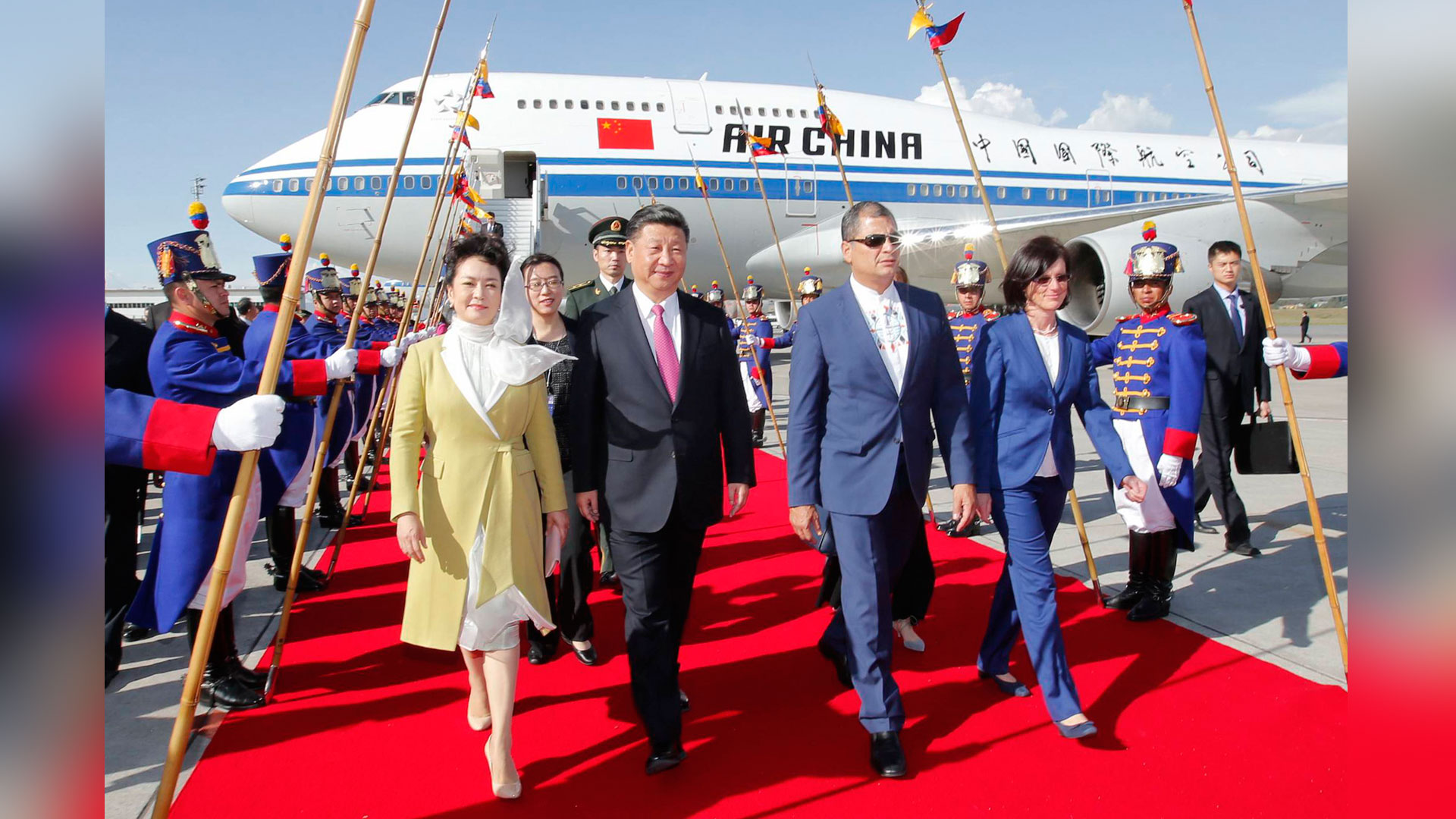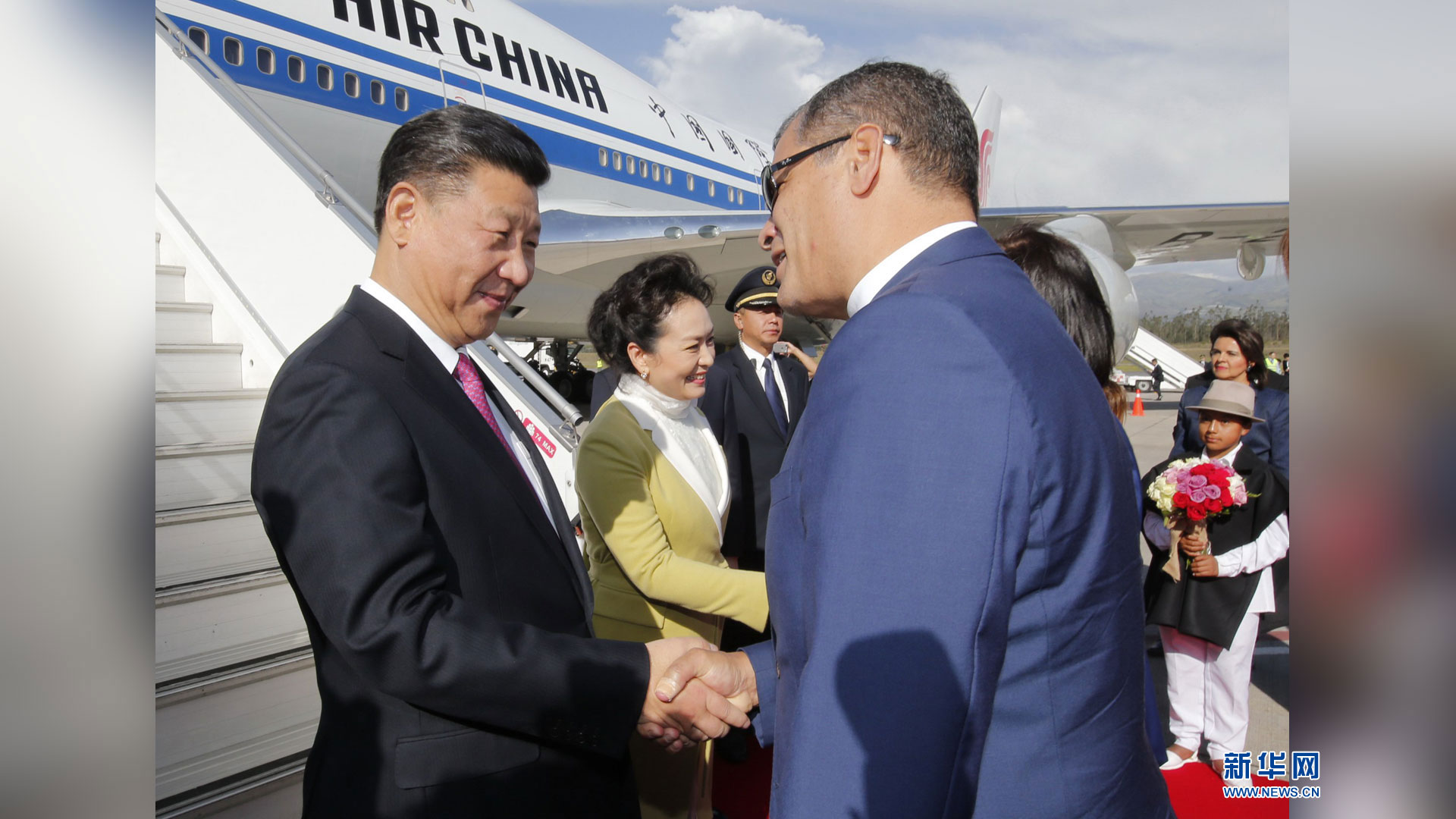 當(dāng)?shù)貢r(shí)間11月17日,國家主席習(xí)近平乘專機(jī)抵達(dá)基多,開始對(duì)厄瓜多爾共和國進(jìn)行國事訪問。厄瓜多爾總統(tǒng)科雷亞和夫人馬勒布等在機(jī)場熱情迎接習(xí)近平和夫人彭麗媛。新華社記者 鞠鵬 攝2016-11-18