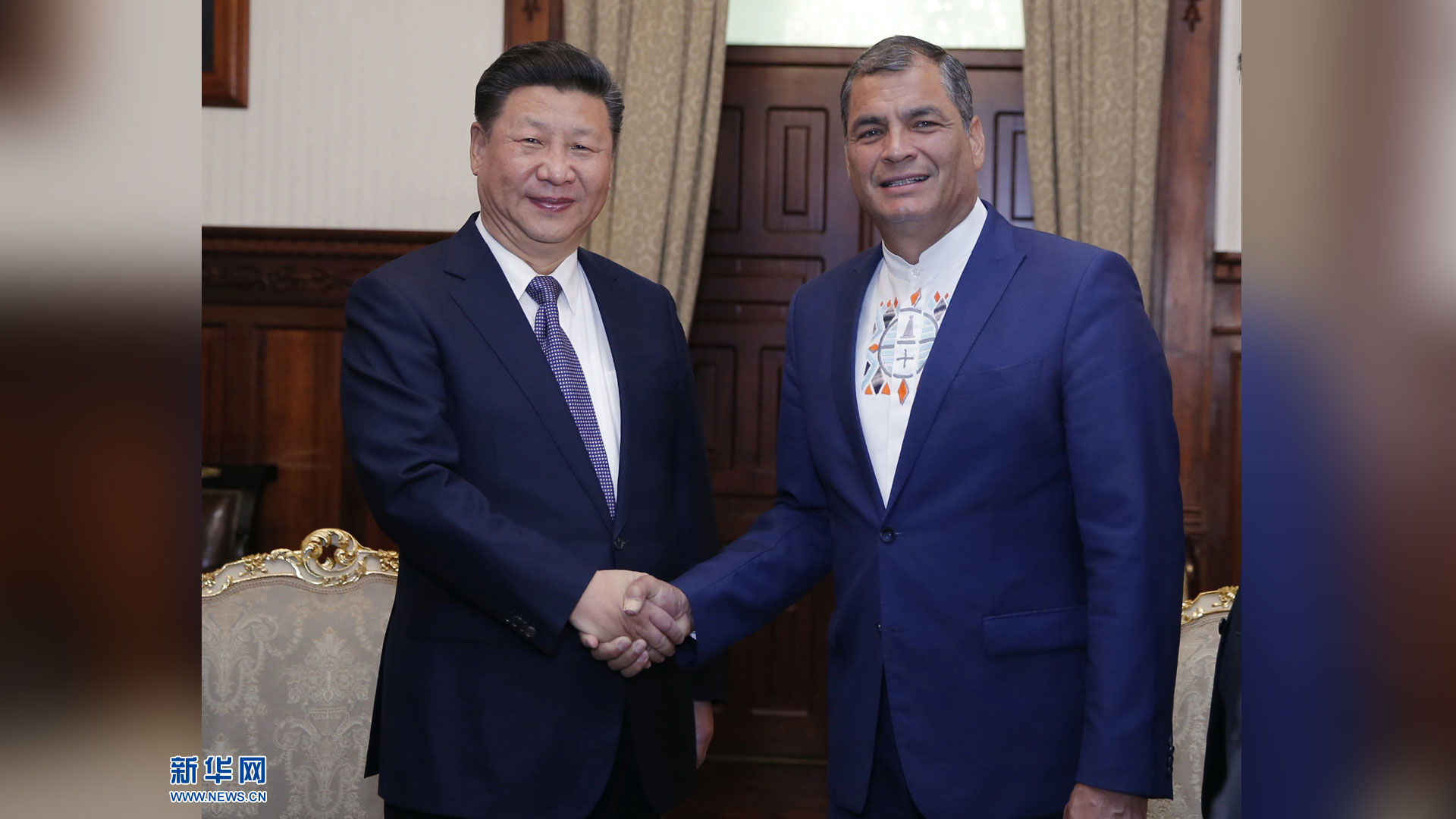 當(dāng)?shù)貢r(shí)間11月18日,國家主席習(xí)近平在基多會(huì)見厄瓜多爾國民代表大會(huì)主席里瓦德內(nèi)拉。 新華社記者 鞠鵬 攝2016-11-19