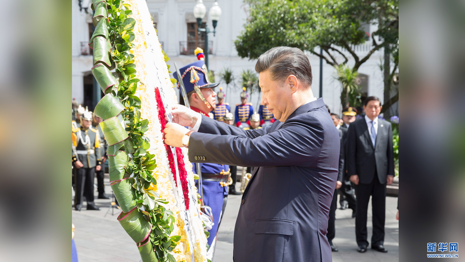 當(dāng)?shù)貢r(shí)間11月18日,國家主席習(xí)近平向厄瓜多爾獨(dú)立英雄紀(jì)念碑敬獻(xiàn)花圈。 新華社記者 黃敬文 攝2016-11-19
