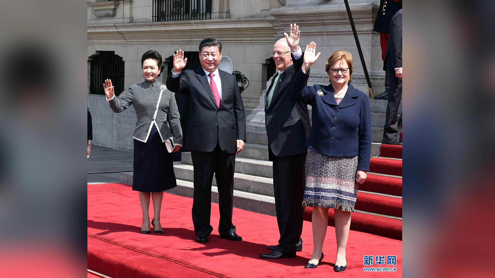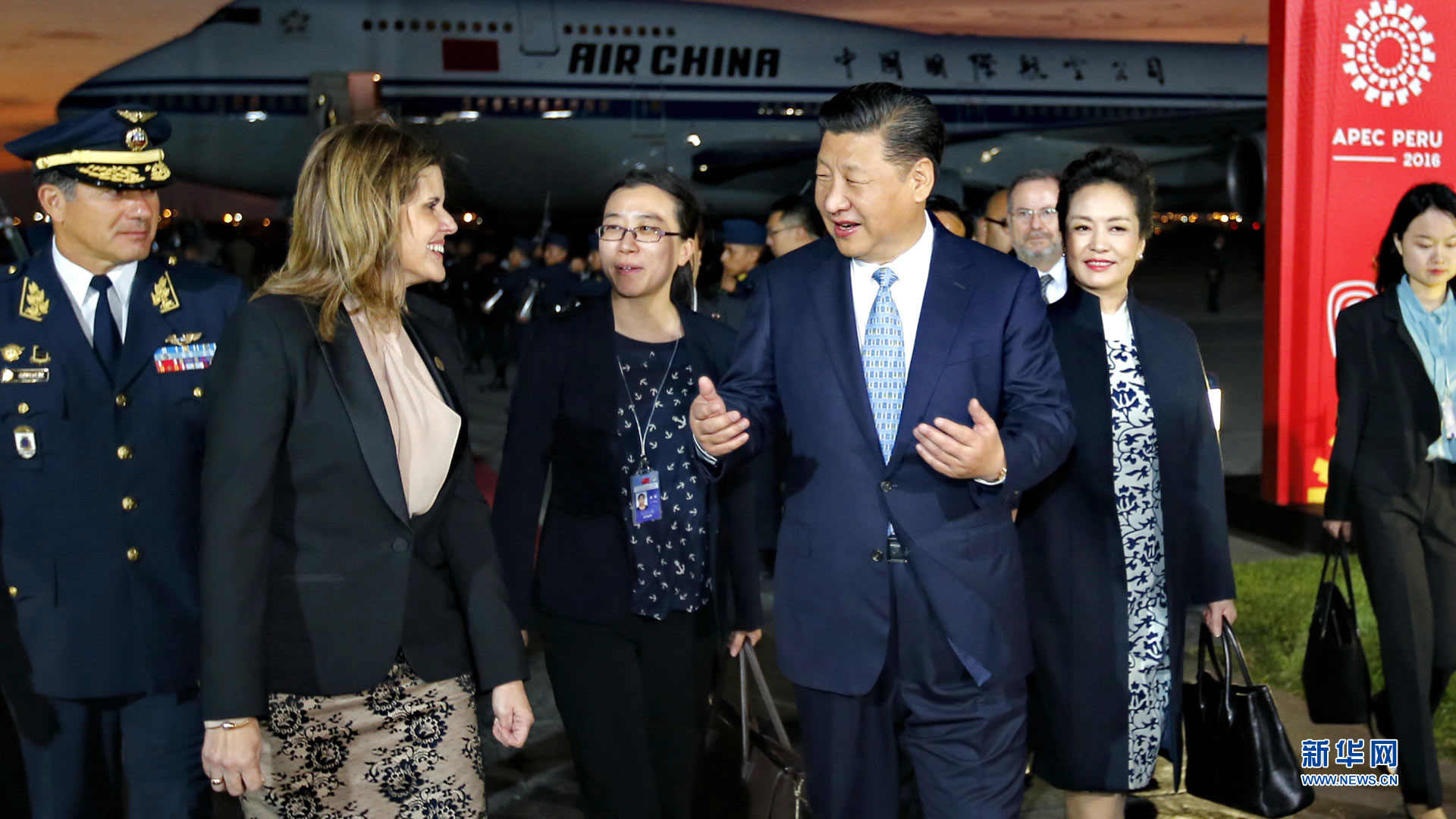 當(dāng)?shù)貢r(shí)間11月18日,國家主席習(xí)近平抵達(dá)利馬,出席亞太經(jīng)合組織第二十四次領(lǐng)導(dǎo)人非正式會(huì)議并對(duì)秘魯共和國進(jìn)行國事訪問。習(xí)近平和夫人彭麗媛受到秘魯副總統(tǒng)阿勞斯等熱情迎接。新華社記者 蘭紅光 攝2016-11-20