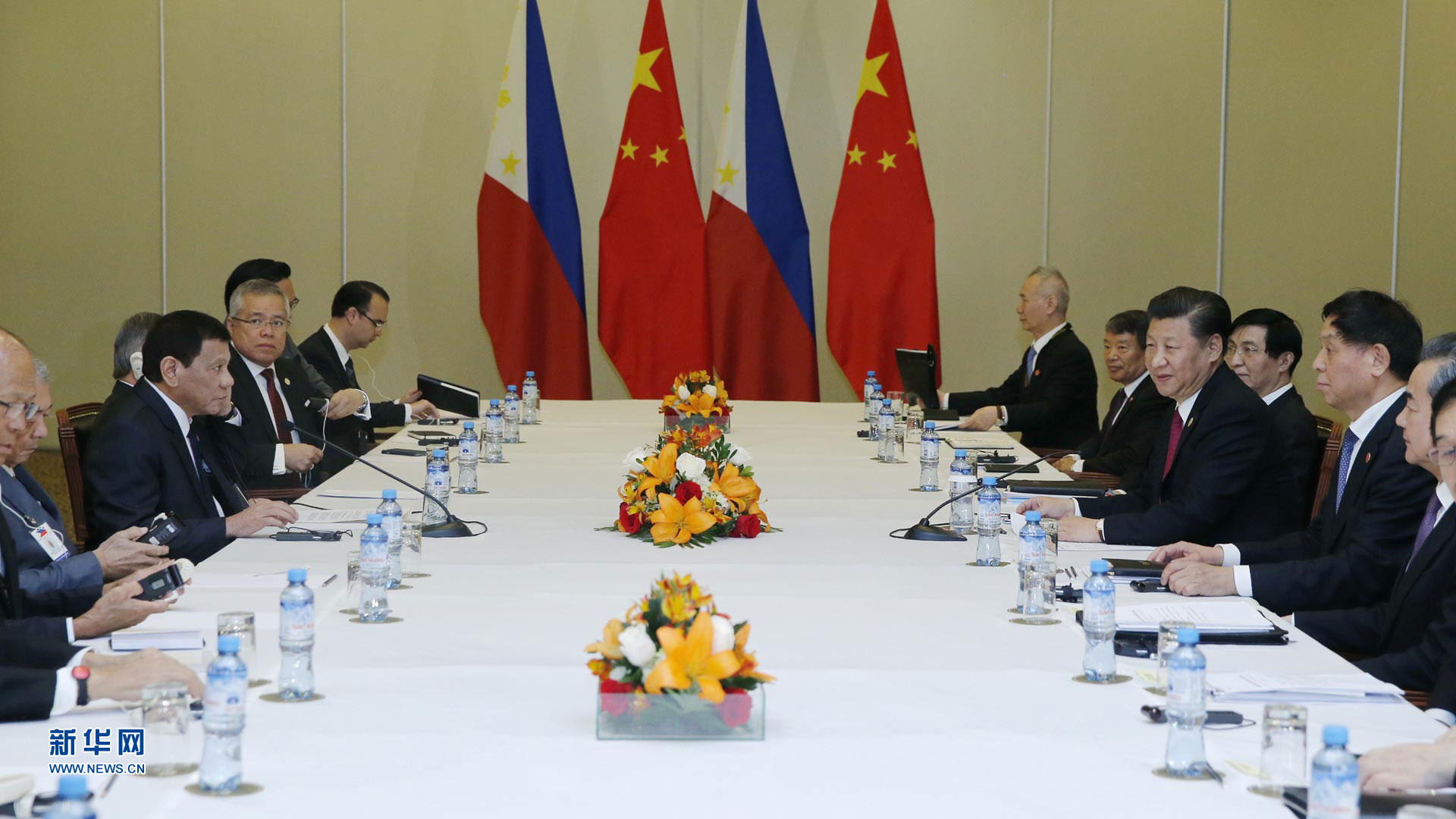 11月19日,國家主席習(xí)近平在利馬會(huì)見菲律賓總統(tǒng)杜特爾特。新華社記者 鞠鵬 攝2016-11-20