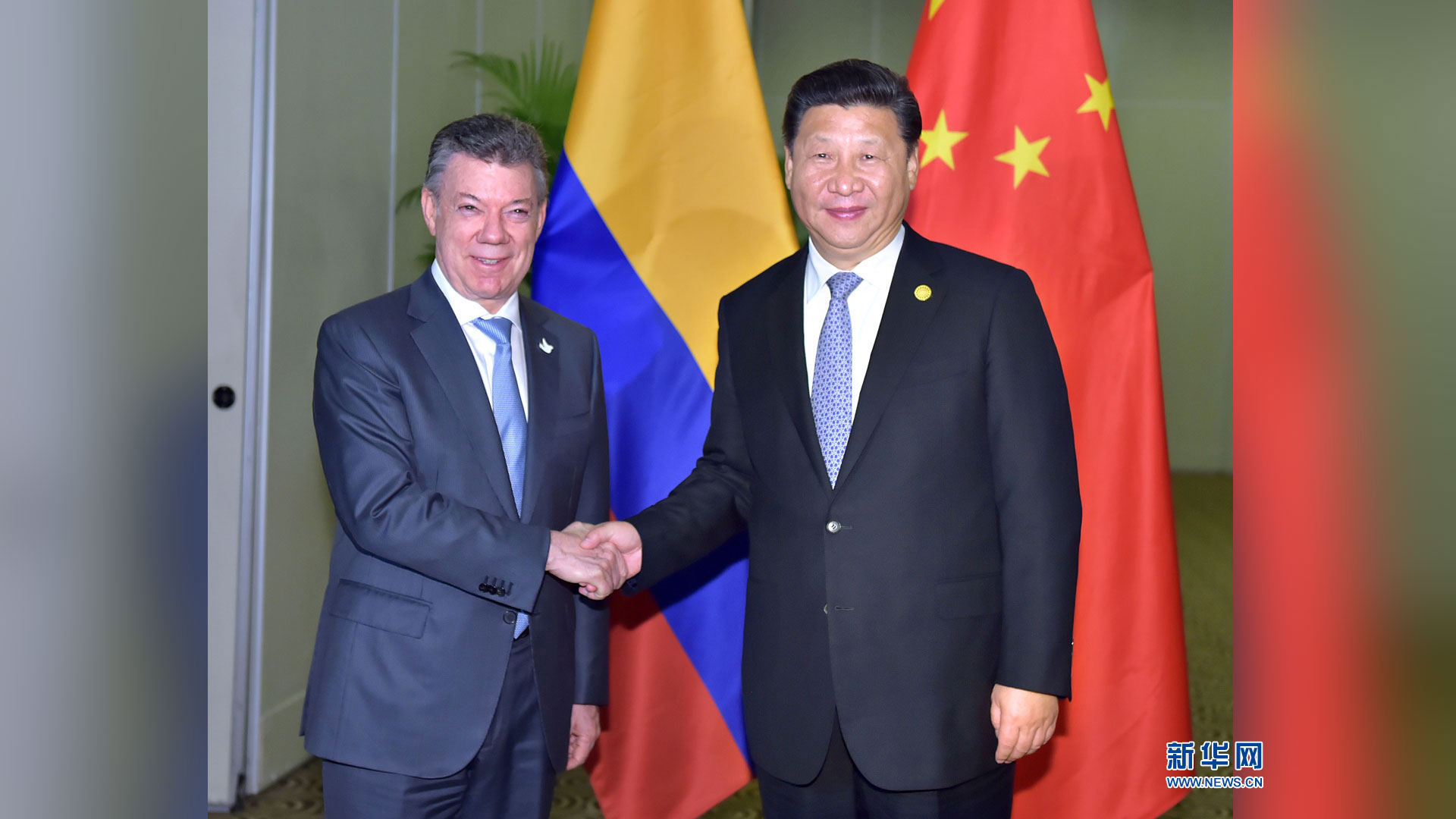 11月19日,國家主席習(xí)近平在利馬會(huì)見哥倫比亞總統(tǒng)桑托斯。新華社記者 龐興雷 攝2016-11-20