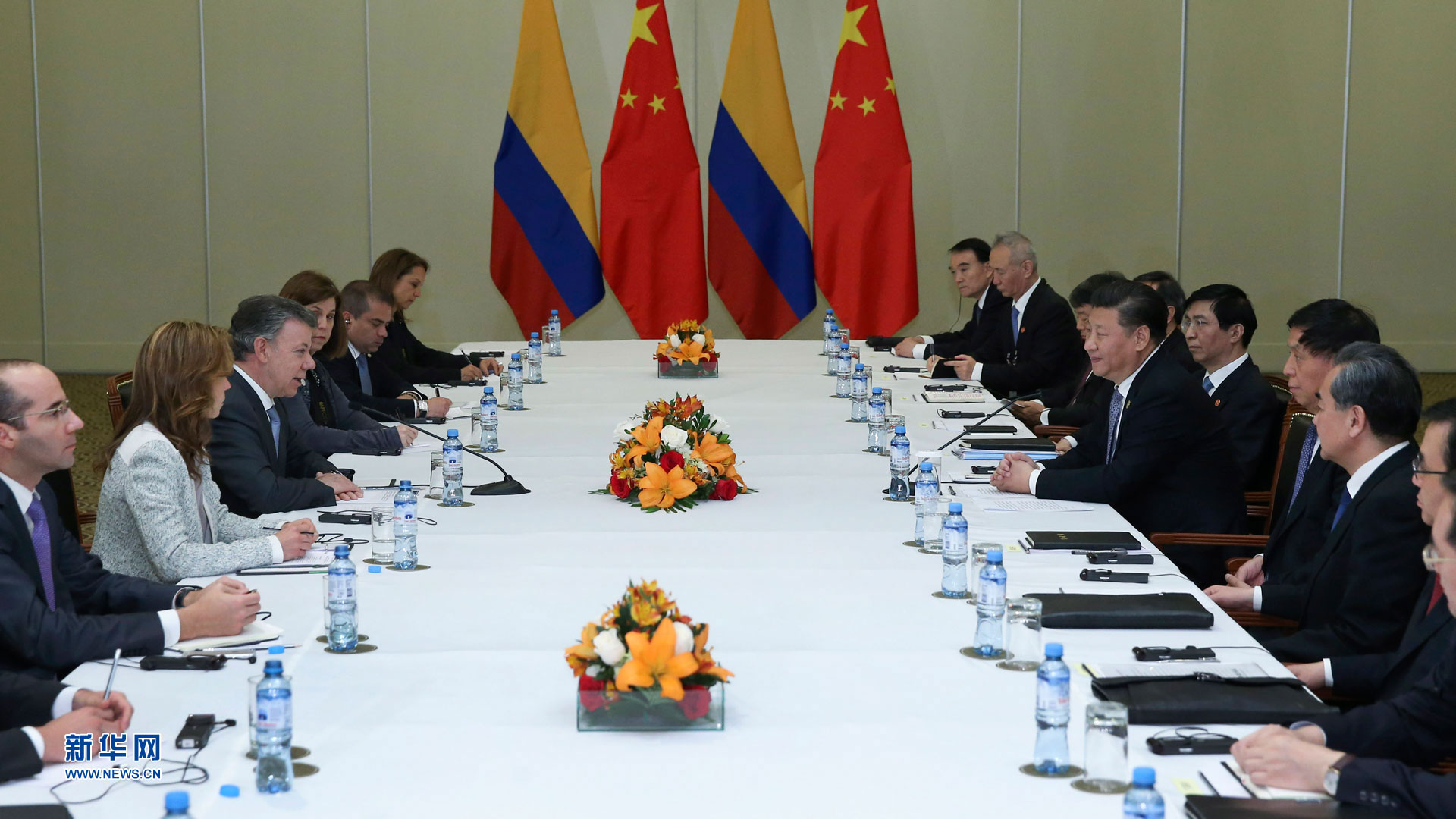 11月19日,國家主席習(xí)近平在利馬會(huì)見哥倫比亞總統(tǒng)桑托斯。新華社記者 李濤 攝2016-11-20