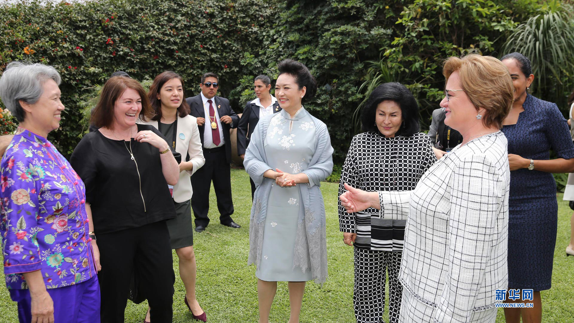 當(dāng)?shù)貢r(shí)間11月19日,應(yīng)秘魯總統(tǒng)夫人蘭格邀請(qǐng),國家主席習(xí)近平夫人彭麗媛在利馬同參加亞太經(jīng)合組織第二十四次領(lǐng)導(dǎo)人非正式會(huì)議的部分經(jīng)濟(jì)體領(lǐng)導(dǎo)人配偶共同參觀拉爾科博物館。新華社記者 丁林 攝2016-11-20