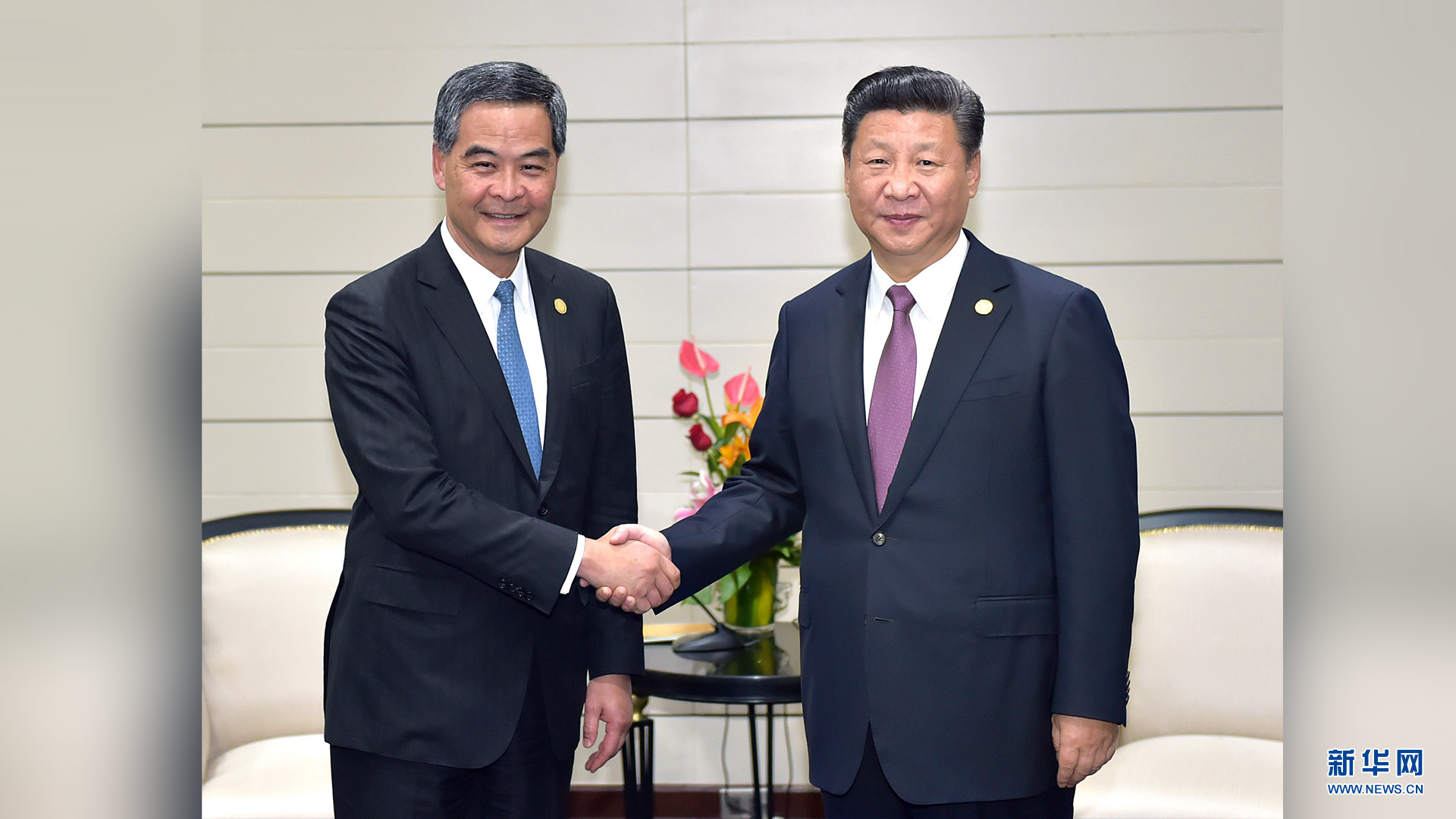 11月20日,國家主席習(xí)近平在秘魯首都利馬會(huì)見前來出席亞太經(jīng)合組織第二十四次領(lǐng)導(dǎo)人非正式會(huì)議的香港特別行政區(qū)行政長官梁振英。新華社記者 李濤 攝2016-11-21
