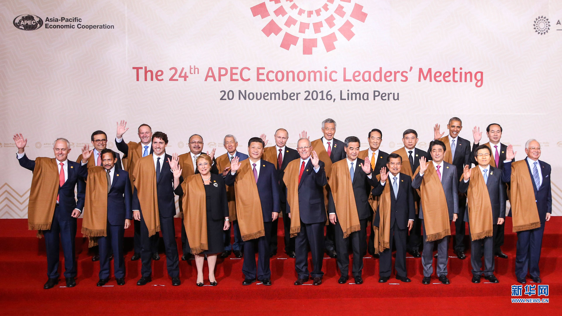 11月20日,亞太經(jīng)合組織第二十四次領(lǐng)導(dǎo)人非正式會(huì)議在秘魯利馬舉行。國家主席習(xí)近平出席并發(fā)表題為《面向未來開拓進(jìn)取促進(jìn)亞太發(fā)展繁榮》的重要講話。這是會(huì)議期間,國家主席習(xí)近平同其他亞太經(jīng)合組織成員經(jīng)濟(jì)體領(lǐng)導(dǎo)人、代表合影。 新華社記者 丁林 攝2016-11-21