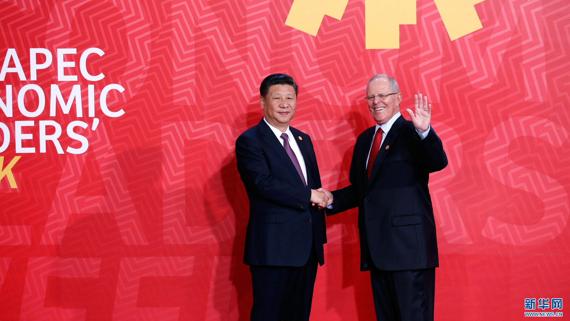 11月20日,亞太經(jīng)合組織第二十四次領(lǐng)導(dǎo)人非正式會(huì)議在秘魯利馬舉行。國家主席習(xí)近平出席并發(fā)表題為《面向未來開拓進(jìn)取促進(jìn)亞太發(fā)展繁榮》的重要講話。這是會(huì)議開始前,習(xí)近平受到秘魯總統(tǒng)庫琴斯基的熱情迎接。 新華社記者 龐興雷 攝2016-11-21