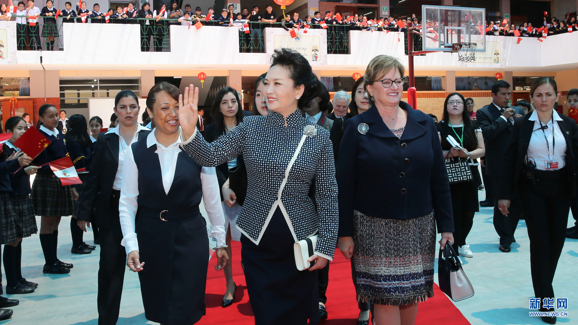 11月21日,國家主席習(xí)近平夫人彭麗媛在利馬參觀若望二十三世秘中學(xué)校。 新華社記者丁林?jǐn)z2016-11-22