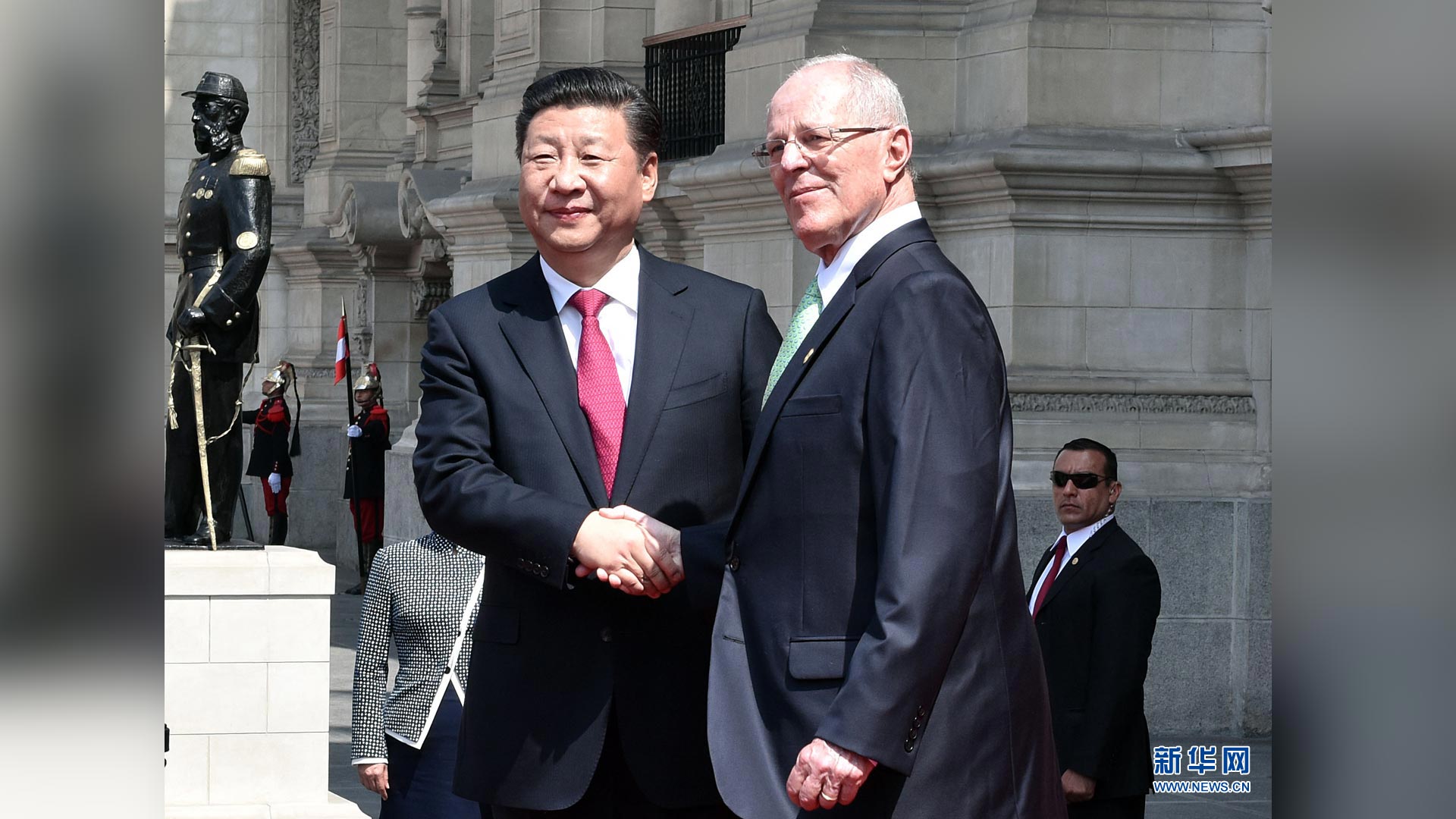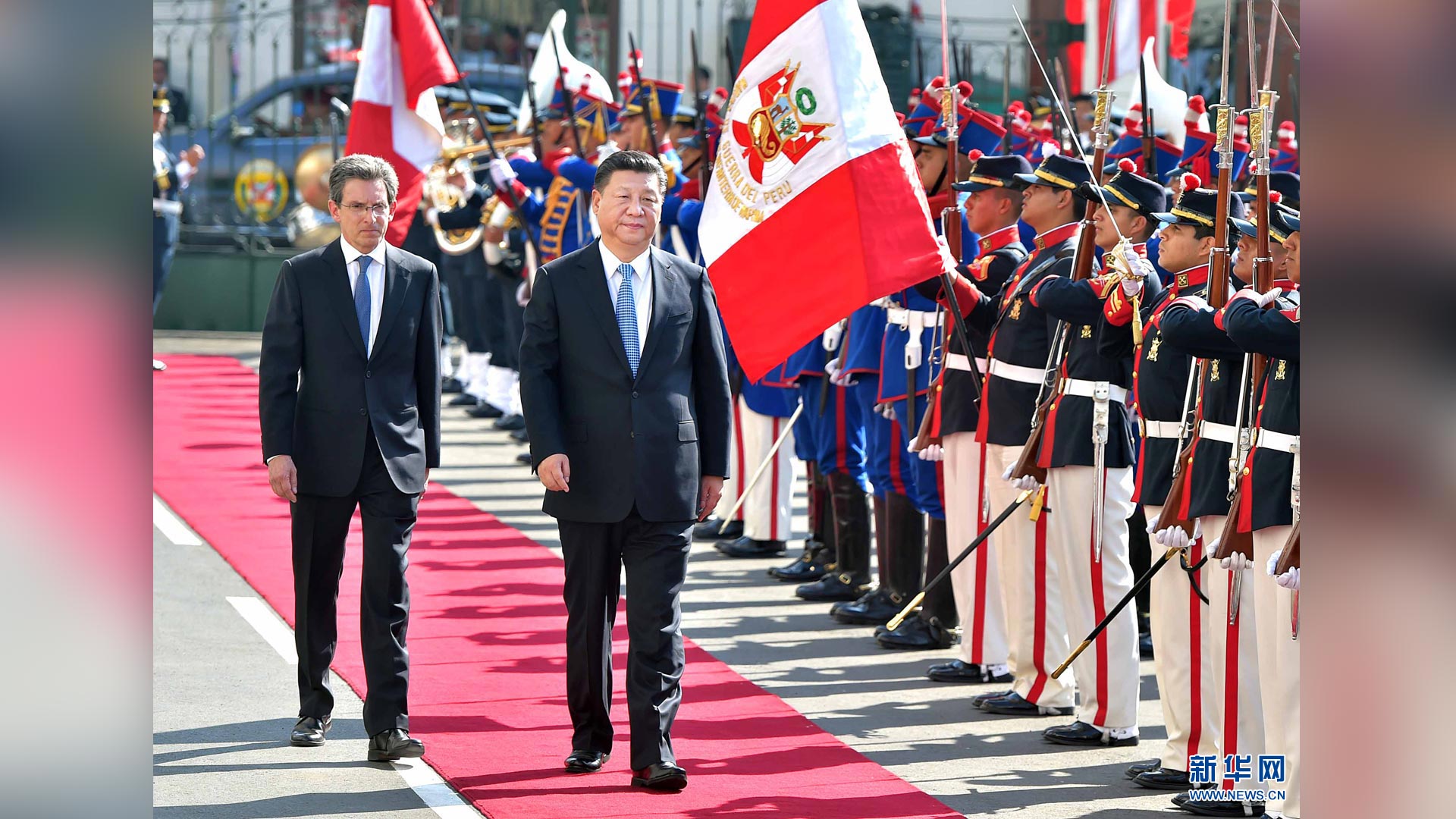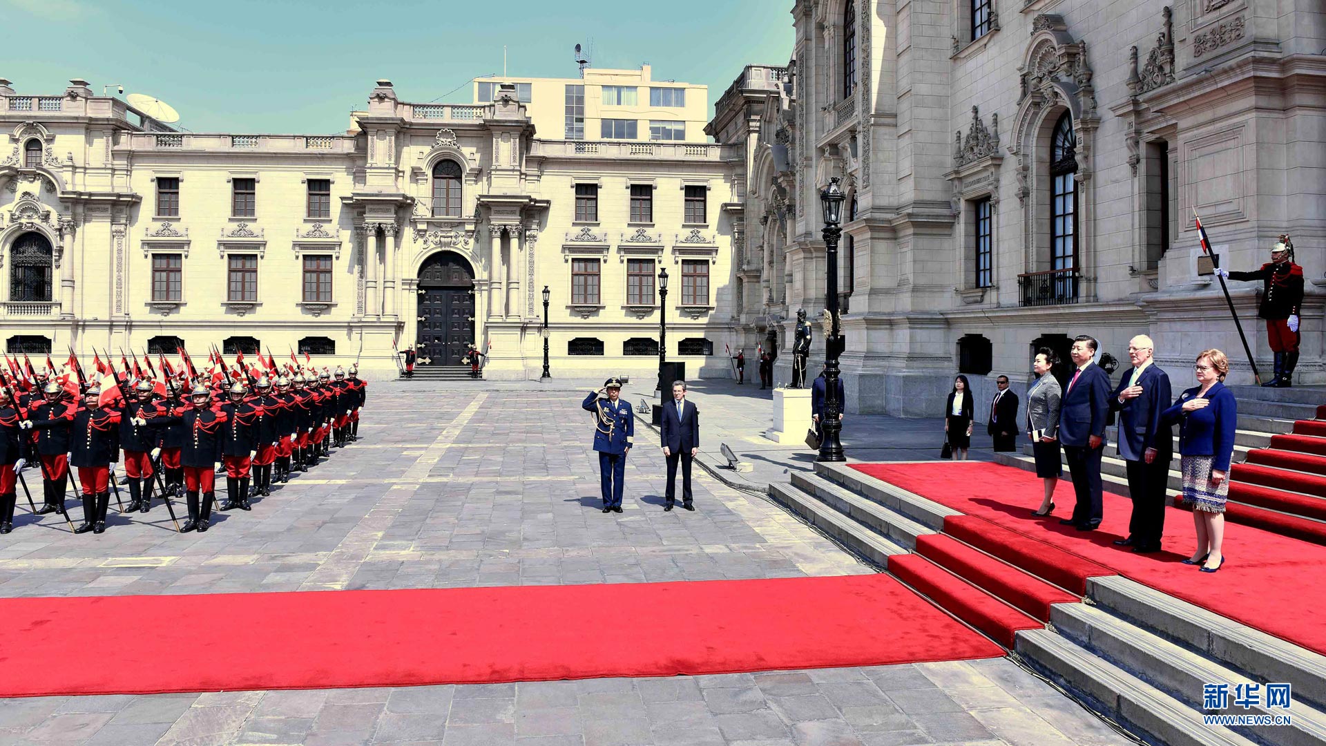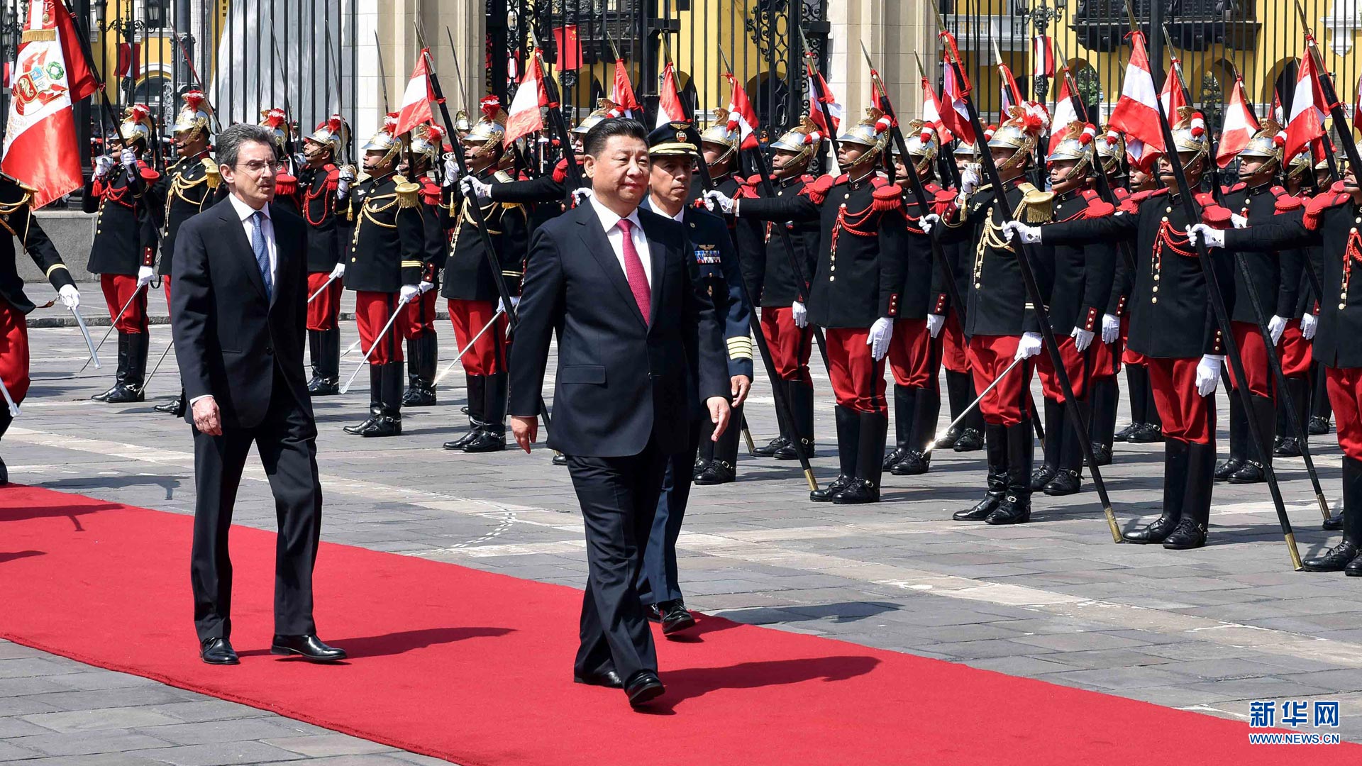 11月21日,國家主席習(xí)近平在利馬同秘魯總統(tǒng)庫琴斯基舉行會(huì)談。會(huì)談前,習(xí)近平出席庫琴斯基在總統(tǒng)府前廣場舉行的歡迎儀式。 新華社記者李濤 攝2016-11-23