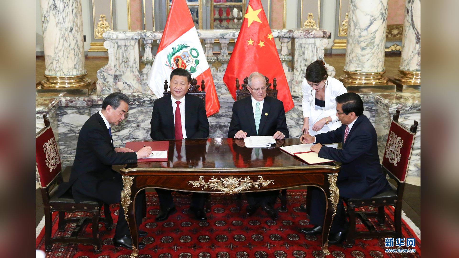 11月21日,國家主席習(xí)近平在利馬同秘魯總統(tǒng)庫琴斯基舉行會(huì)談。會(huì)談后,兩國元首見證《中華人民共和國政府與秘魯共和國政府2016年至2021年共同行動(dòng)計(jì)劃》等文件的簽署。新華社記者 龐興雷 攝2016-11-23