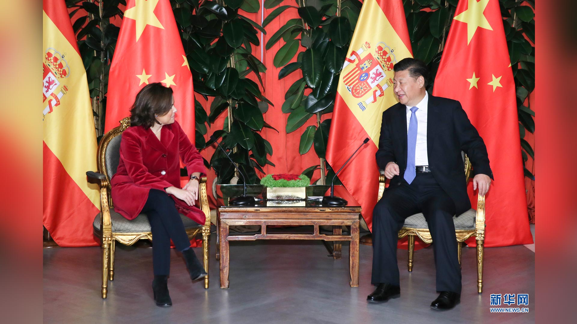 11月24日,國家主席習(xí)近平在西班牙大加那利島會(huì)見西班牙副首相薩恩斯。 新華社記者 蘭紅光 攝2016-11-25