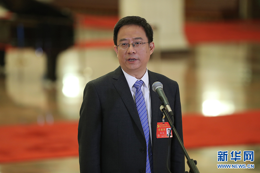 10月19日,“黨代表通道”第二場(chǎng)采訪活動(dòng)在人民大會(huì)堂舉行。圖為黃一兵代表接受采訪。新華網(wǎng) 翟子赫 攝