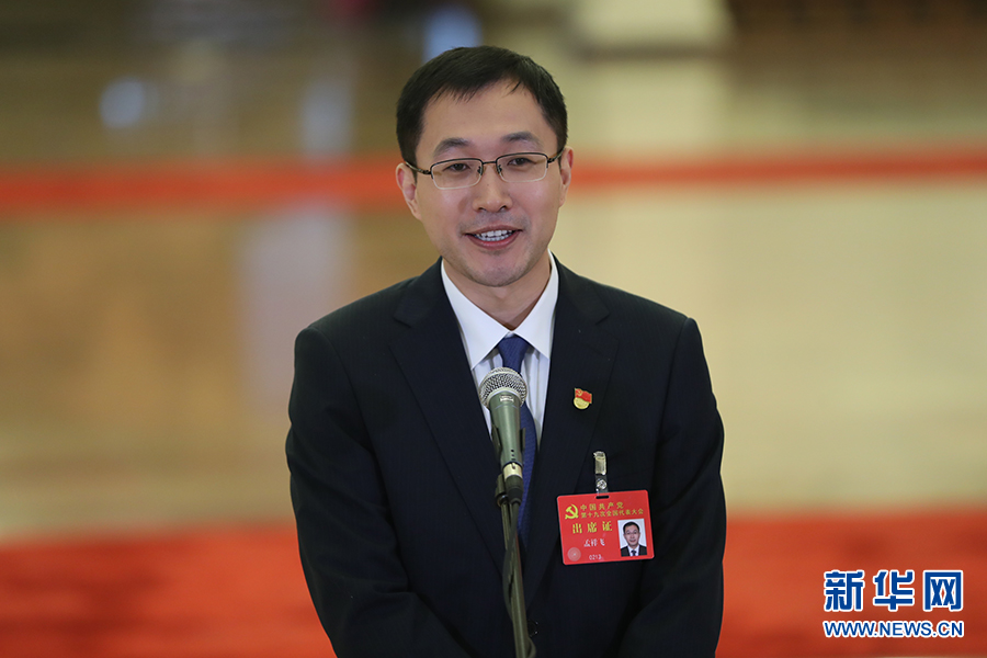 10月19日,“黨代表通道”第二場采訪活動(dòng)在人民大會(huì)堂舉行。圖為孟祥飛代表接受采訪。新華網(wǎng) 翟子赫 攝