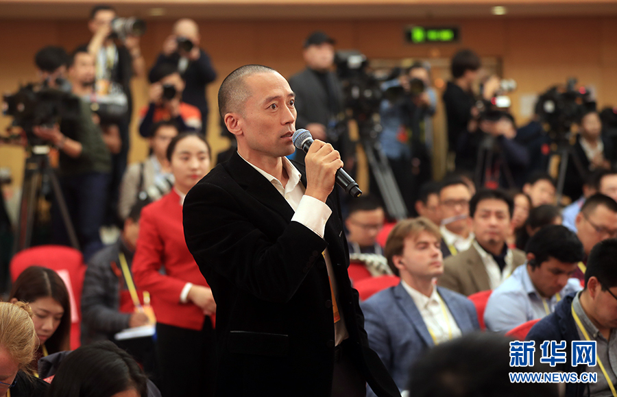 ??? 10月19日,十九大新聞中心舉行記者會,邀請中紀委、中組部負責人介紹黨的建設和全面從嚴治黨相關情況。圖為美國國際市場新聞社記者提問。 郝廣鵬攝