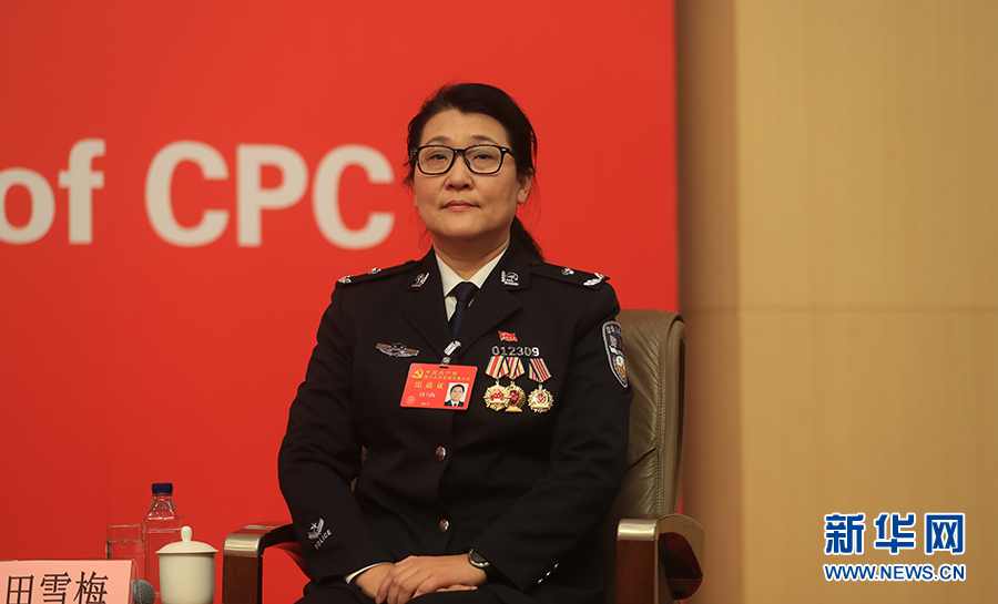 ??? 10月19日,十九大新聞中心舉辦集體采訪,邀請政法戰線代表談全面推進依法治國。圖為公安部物證鑒定中心法醫病理損傷技術處副處長田雪梅。新華網 郝廣鵬攝