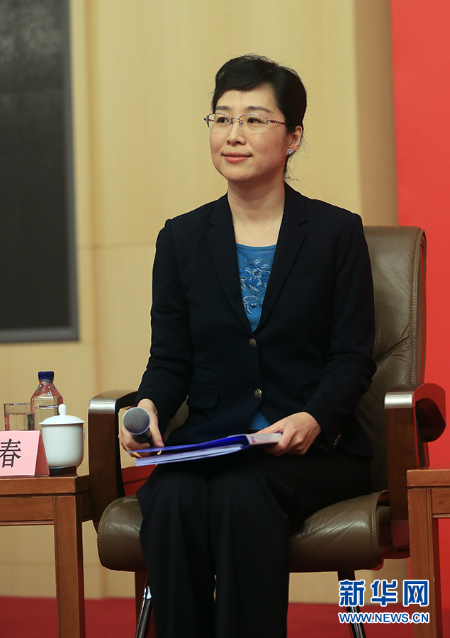 ??? 10月19日,十九大新聞中心舉辦集體采訪,邀請政法戰線代表談全面推進依法治國。圖為主持人襲艷春。新華網 郝廣鵬攝