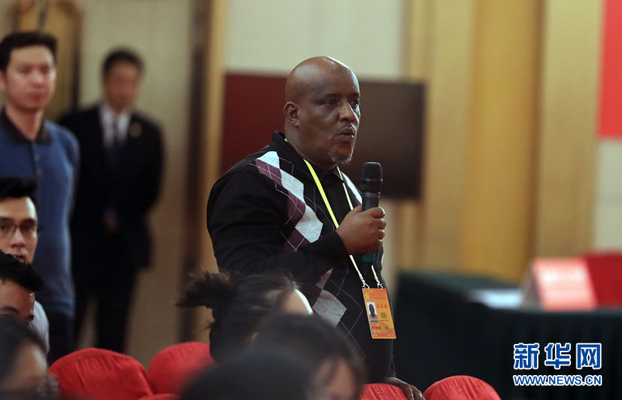 ??? 10月19日,十九大新聞中心舉辦集體采訪,邀請政法戰(zhàn)線代表談全面推進(jìn)依法治國。圖為肯尼亞記者提問。新華網(wǎng) 郝廣鵬攝