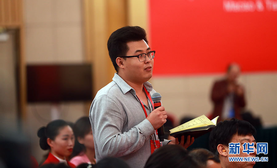??? 10月19日,十九大新聞中心舉辦集體采訪,邀請工信和通訊領域代表談走新型工業化道路。圖為中國質量報記者提問。新華網 郝廣鵬攝