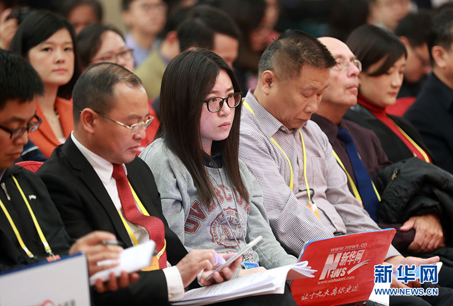 ??? 10月20日,十九大新聞中心舉行記者會,邀請中宣部、中央文明辦、文化部、新聞出版廣電總局相關(guān)負責人介紹加強思想道德和文化建設(shè)情況,并回答記者提問。圖為記者會現(xiàn)場。新華網(wǎng) 郝廣鵬 攝