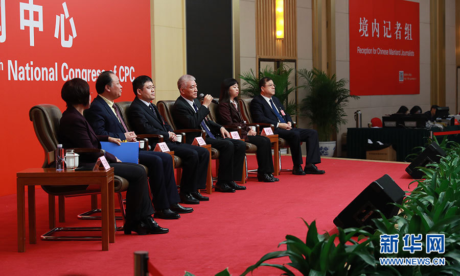 ??? 10月20日,十九大新聞中心舉辦集體采訪活動,主題為“實施創(chuàng)新驅(qū)動發(fā)展戰(zhàn)略”。圖為集體采訪活動現(xiàn)場。新華網(wǎng) 郝廣鵬攝