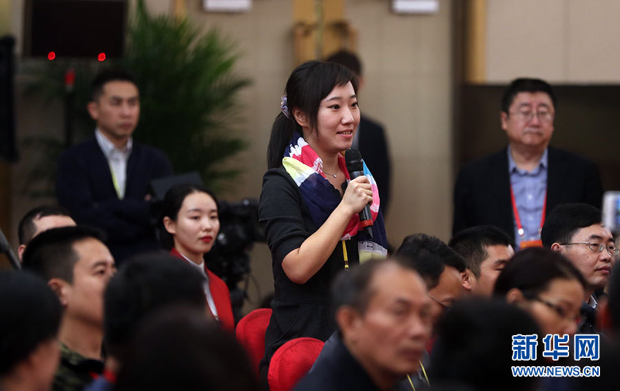 ??? 10月20日,十九大新聞中心舉辦集體采訪活動(dòng),主題為“實(shí)施創(chuàng)新驅(qū)動(dòng)發(fā)展戰(zhàn)略”。圖為香港鳳凰衛(wèi)視記者提問(wèn)。新華網(wǎng) 郝廣鵬攝