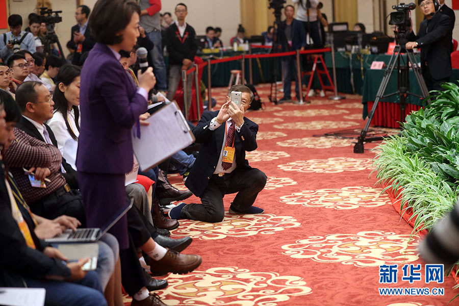 ??? 10月21日,十九大新聞中心舉辦記者招待會,邀請國家發展改革委黨組書記、主任何立峰,副主任張勇,副主任寧吉喆介紹以新發展理念為引領,推進中國經濟平穩健康可持續發展有關情況,并回答記者提問。圖為現場記者。新華網 郝廣鵬攝