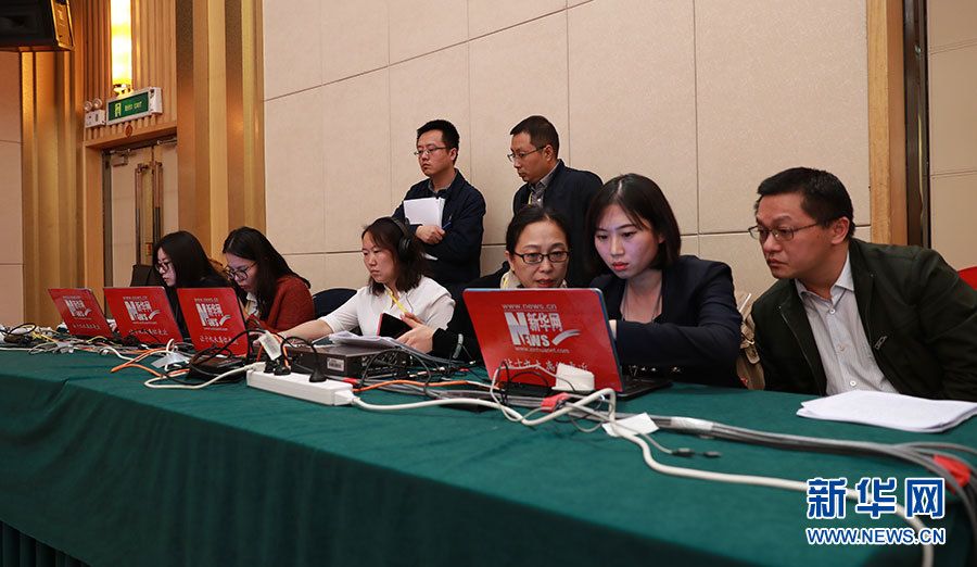 10月23日,十九大新聞中心舉辦記者招待會,邀請中央財經領導小組辦公室副主任楊偉民,環境保護部黨組書記、部長李干杰介紹踐行綠色發展理念,建設美麗中國有關情況,并回答記者提問。圖為新華網現場直播。新華網 郝廣鵬攝