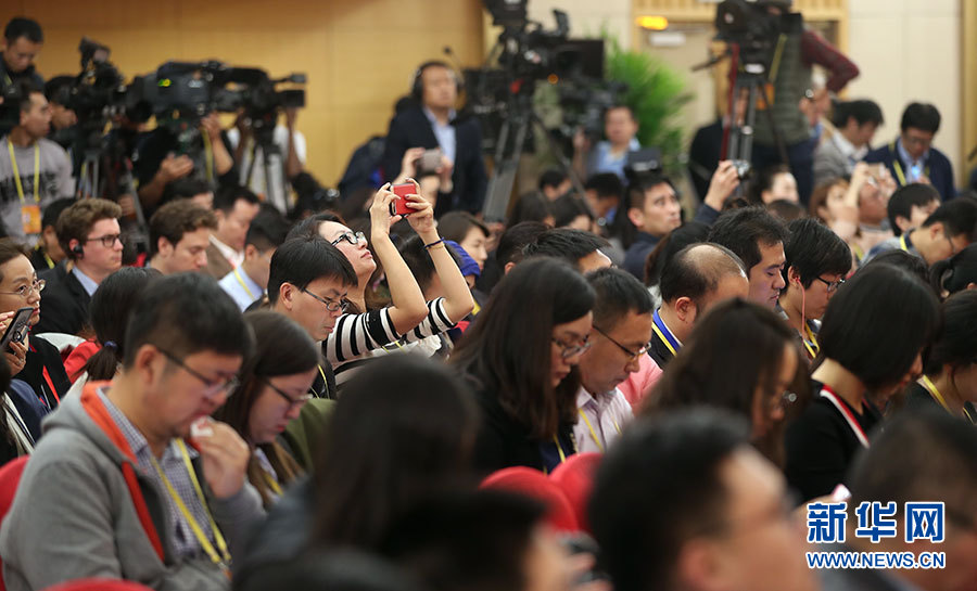 10月23日,十九大新聞中心舉辦記者招待會(huì),邀請(qǐng)中央財(cái)經(jīng)領(lǐng)導(dǎo)小組辦公室副主任楊偉民,環(huán)境保護(hù)部黨組書(shū)記、部長(zhǎng)李干杰介紹踐行綠色發(fā)展理念,建設(shè)美麗中國(guó)有關(guān)情況,并回答記者提問(wèn)。圖為現(xiàn)場(chǎng)記者。新華網(wǎng) 郝廣鵬攝