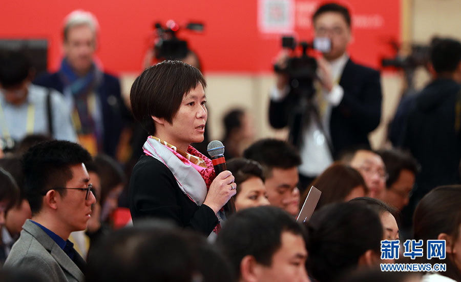 10月23日,十九大新聞中心舉辦記者招待會,邀請中央財經領導小組辦公室副主任楊偉民,環境保護部黨組書記、部長李干杰介紹踐行綠色發展理念,建設美麗中國有關情況,并回答記者提問。圖為中國青年報記者提問。新華網 郝廣鵬攝
