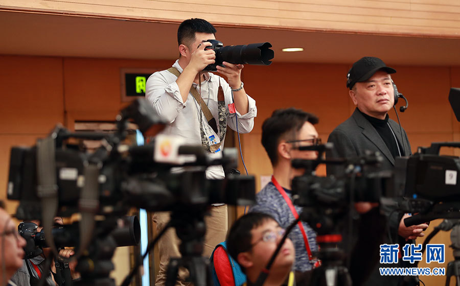 10月23日,十九大新聞中心舉辦集體采訪活動(dòng),主題為“打好生態(tài)環(huán)保攻堅(jiān)戰(zhàn)”。圖為現(xiàn)場記者。新華網(wǎng) 郝廣鵬攝