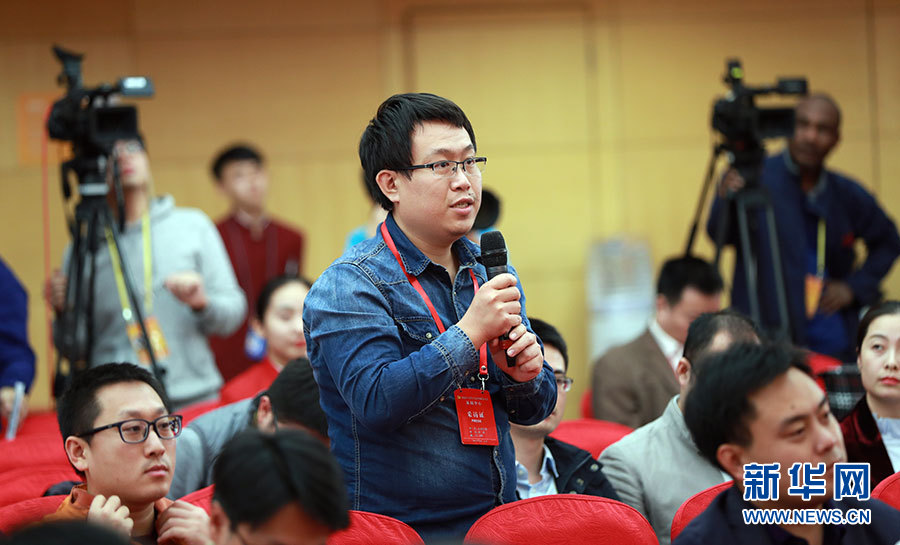 10月23日,十九大新聞中心舉辦集體采訪活動,主題為“打好生態環保攻堅戰”。圖為光明日報記者提問。新華網 郝廣鵬攝