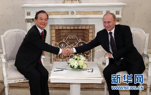 溫家寶首先轉達了胡錦濤主席和習近平總書記對普京總統的問候。溫家寶說,近年來,中俄關系不斷邁上新臺階,呈現出旺盛強勁的發展勢頭。雙方在涉及彼此核心利益問題上相互堅定支持,攜手應對國際金融危機,經貿合作取得豐碩成果,在重大地區和國際問題上密切協調配合,有力地維護共同利益,為促進世界和平與發展作出了重大貢獻。今天中俄關系的良好局面是兩國領導人高度重視和大力推動的結果,得到兩國人民的廣泛支持,有著牢固的政治基礎和社會基礎。