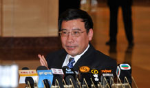 2012年3月4日上午11時,十一屆全國人大五次會議在人民大會堂三樓金色大廳舉行新聞發(fā)布會,由大會發(fā)言人就會議議程和人大工作相關(guān)的問題回答中外記者的提問。