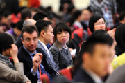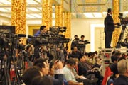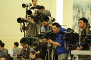 外國(guó)媒體記者在會(huì)場(chǎng)做好準(zhǔn)備