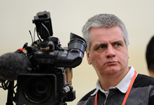 一名攝像記者在拍攝記者會(huì)