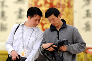 攝影記者架著“長(zhǎng)槍短炮”大顯身手