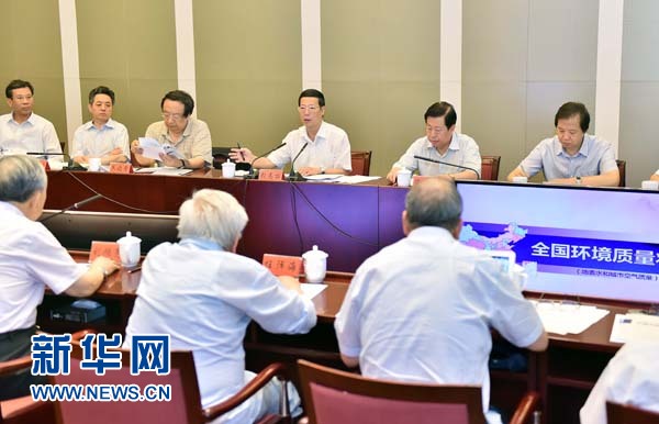??? 6月5日,中共中央政治局常委、國(guó)務(wù)院副總理張高麗到中國(guó)環(huán)境科學(xué)研究院和中國(guó)環(huán)境監(jiān)測(cè)總站調(diào)研。這是張高麗在院士專家座談會(huì)上發(fā)表講話。新華社記者 李濤 攝