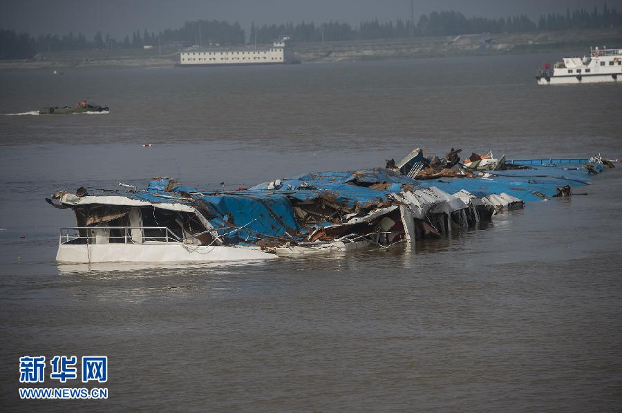 長江“東方之星”完全扶正 但只露出藍(lán)色船頂