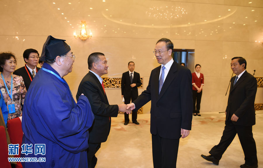 ?? 9月4日,紀(jì)念中國(guó)人民抗日戰(zhàn)爭(zhēng)暨世界反法西斯戰(zhàn)爭(zhēng)勝利70周年宗教界和平祈禱活動(dòng)在北京舉行。這是中共中央書(shū)記處書(shū)記、全國(guó)政協(xié)副主席杜青林,全國(guó)政協(xié)副主席齊續(xù)春會(huì)見(jiàn)參加和平祈禱活動(dòng)的宗教界代表。新華社記者 張領(lǐng) 攝