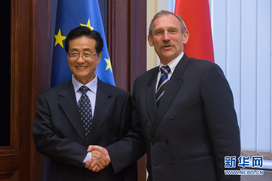 ??? 9月11日,中共中央書記處書記、中央紀委副書記趙洪祝(左)在匈牙利首都布達佩斯會見匈牙利內務部長平特爾。應匈牙利執政黨青民盟邀請,中共中央書記處書記、中央紀委副書記趙洪祝率中共代表團于9月10日至11日訪問匈牙利。新華社發(弗爾季·奧蒂洛攝)