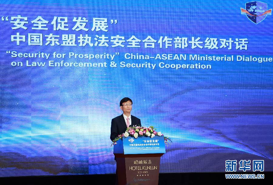 ??? 10月23日,“安全促發(fā)展”中國(guó)東盟執(zhí)法安全合作部長(zhǎng)級(jí)對(duì)話(huà)在北京舉行。這是中共中央政治局委員、中央政法委書(shū)記孟建柱致開(kāi)幕辭。新華社記者 丁海濤 攝