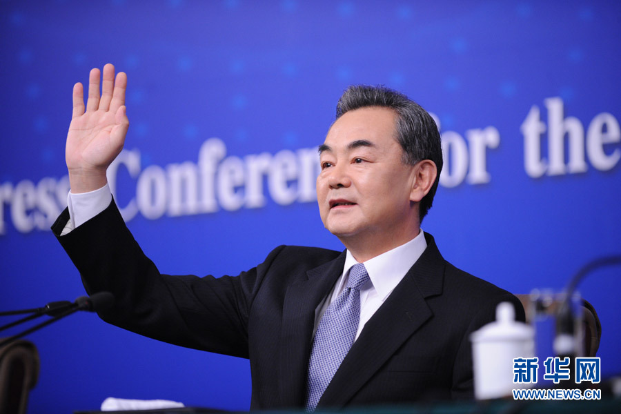 ?? 十二屆全國人大三次會議新聞中心于3月8日(星期日)10時在梅地亞中心多功能廳舉行記者會,邀請外交部部長王毅就中國的外交政策和對外關系相關問題回答中外記者提問。圖為外交部部長王毅向記者揮手致意。新華網/中國政府網 翟子赫 攝