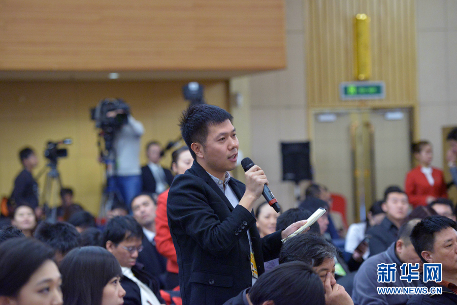 ??? 十二屆全國人大三次會議新聞中心于3月11日10時45分舉行記者會,邀請科技部部長萬鋼就科技改革與發展回答中外記者提問。圖為中國國際廣播電臺記者提問。新華網/中國政府網 郭小天 攝?