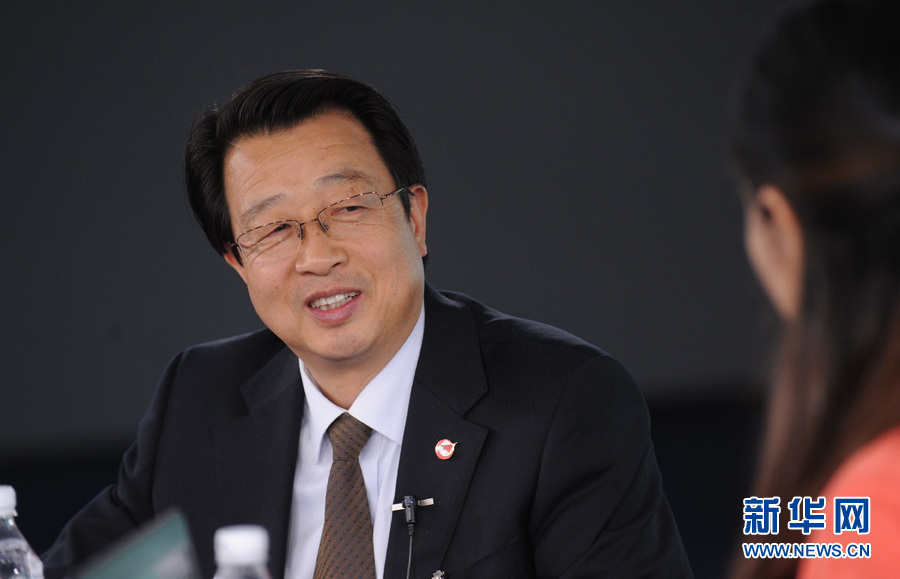 2015年3月13日,全國人大代表、中航飛機股份有限公司總經理唐軍做客新華網,就航空制造業面臨的機遇和挑戰與廣大網友展開交流。圖為唐軍在訪談現場。 新華網 陳競超 攝