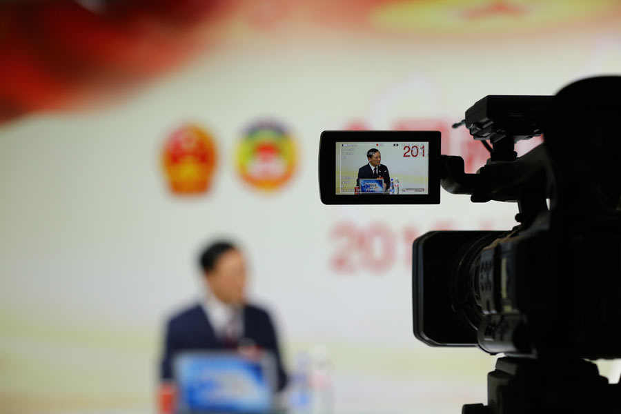 2015年3月13日,全國人大代表,北京大學第三醫院骨科主任及脊柱外科研究所所長劉忠軍做客新華會客廳。圖為訪談現場。新華網 李江 攝