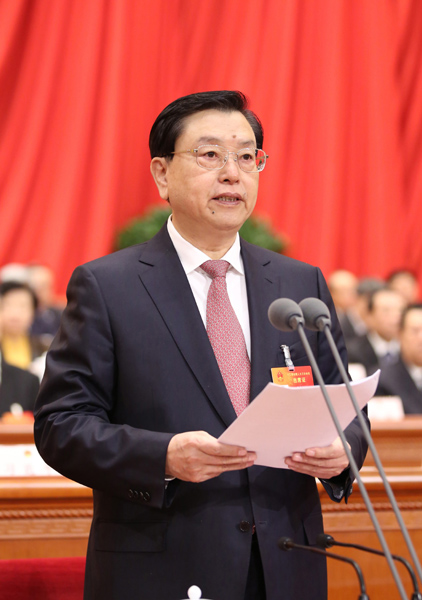 3月15日,第十二屆全國(guó)人民代表大會(huì)第三次會(huì)議在北京人民大會(huì)堂舉行閉幕會(huì)。張德江主持閉幕會(huì)并講話。 新華社記者 蘭紅光 攝